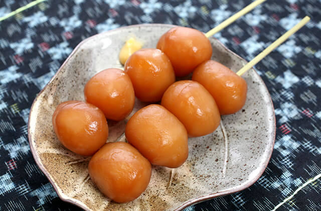 出汁が玉こんにゃくに染み込み、一口食べると醤油出汁が口の中に広がります。