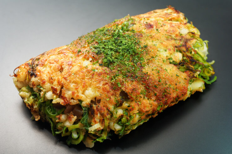 小麦粉生地にネギをたっぷり使って焼いた、お好み焼きに似ているグルメです。